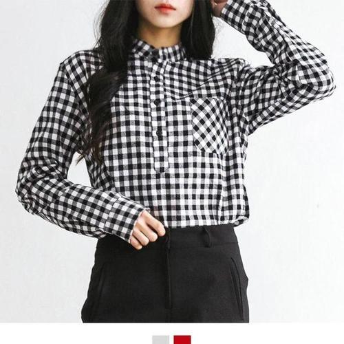 커플시밀러룩 헨리넥 포인트 체크 셔츠
