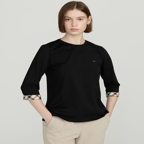 [D-GIFT] 블랙 닥스훈트 자수 체크배색 7부 실켓 티셔츠 (DLTS5B294BK)