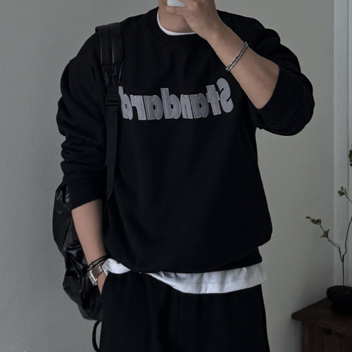 제로스샵 / 남친룩/캐주얼 스탠다드 배색 자수 기모 오버핏 맨투맨