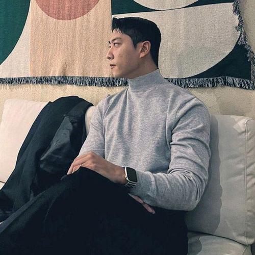 [에이치플러스몰]남성 슬림핏 남친룩 데이트룩 기본 반폴라 긴팔 니트티셔츠