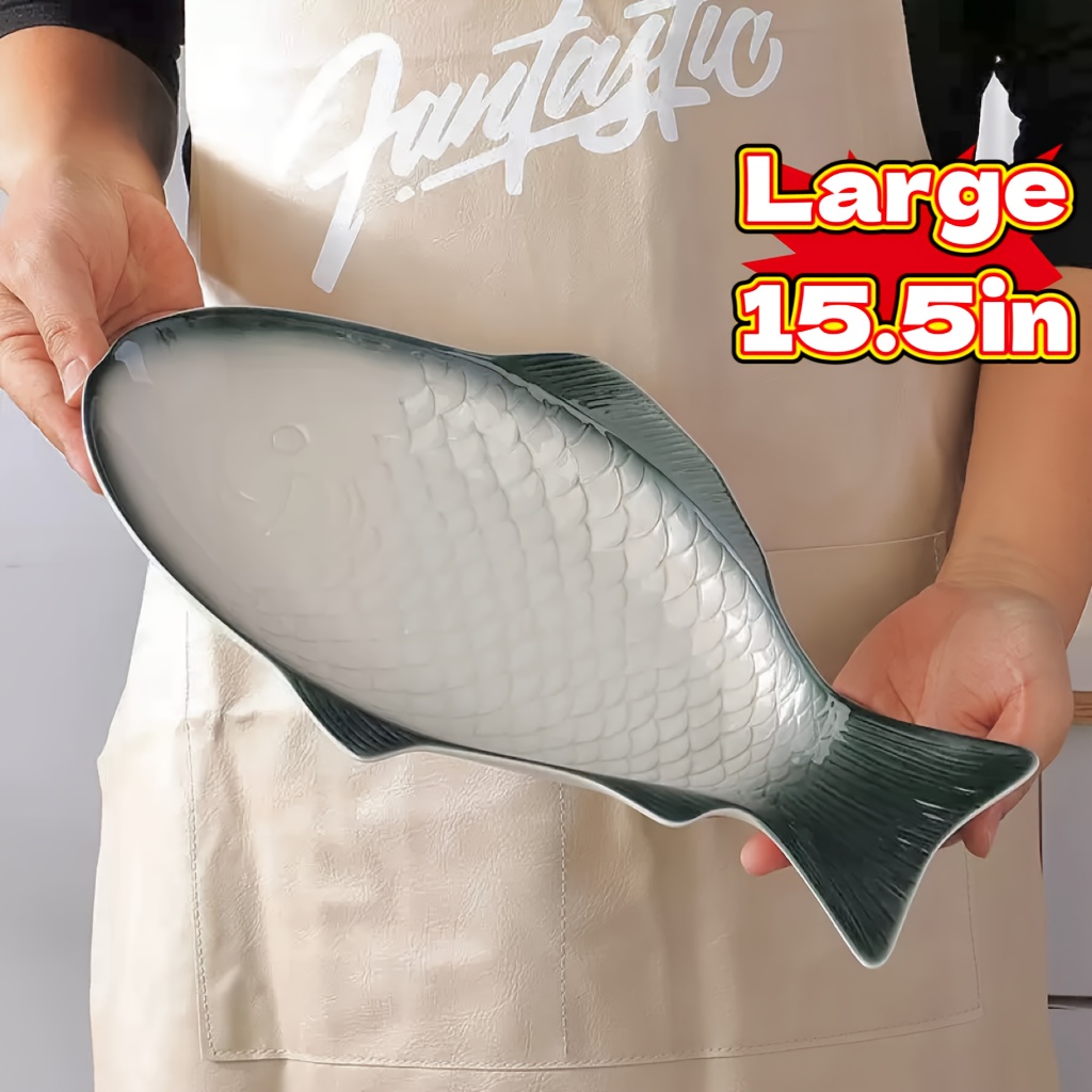 TEMU 15.5인치 특대형 생선 플래터, 2가지 색상으로 제공, 세라믹 생선 접시, 업그레이드 버전, 구매 제품, 레스토랑 및 가정용으로 적합, 예술적인 식기.