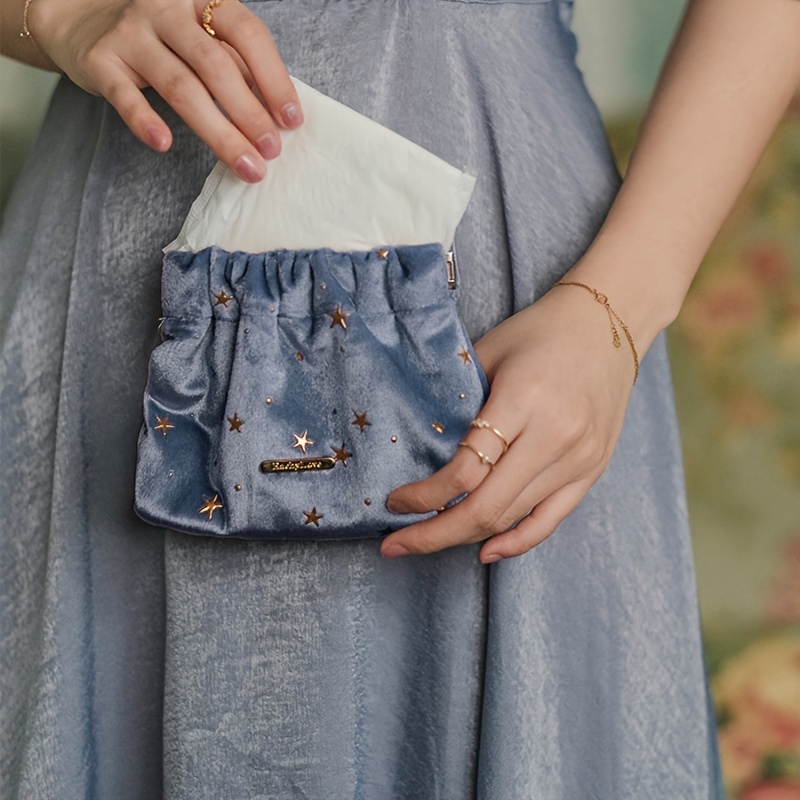 TEMU 시실리 드림 벨벳 화장품 파우치 메이크업 가방 여성용, 비방수, 무향 - 우아한 별과 로고 장식