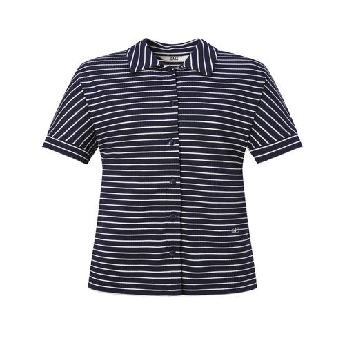[D-GIFT] 네이비 스트라이프 골지 반팔 카라 티셔츠 (DLTS5B393N2)