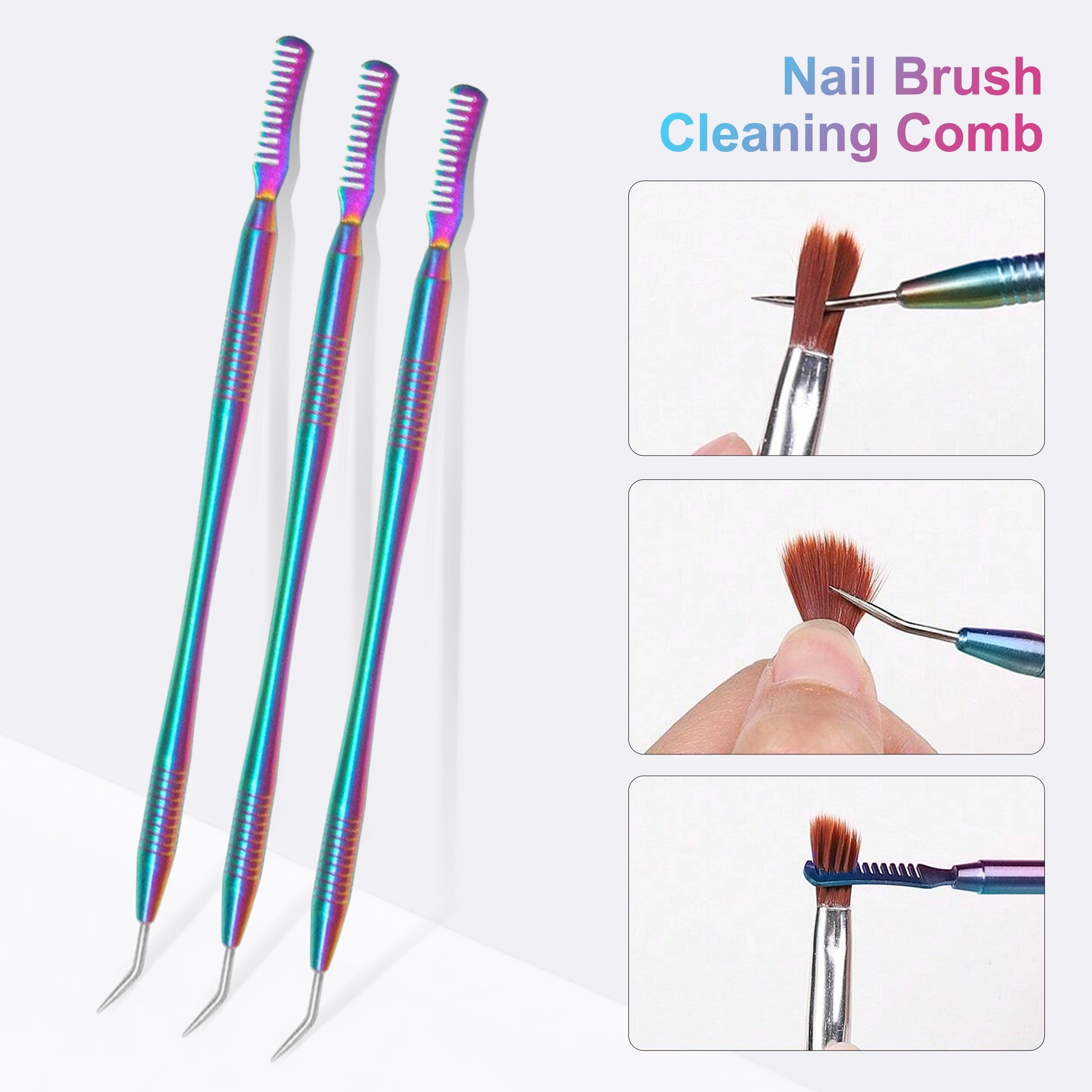 TEMU 1pc 스테인레스 스틸 이중 헤드 네일 브러시 청소 콤, 향기가 없는, 내식성 및 방수, 젤 트리트먼트 도구, 네일 케어 액세서리