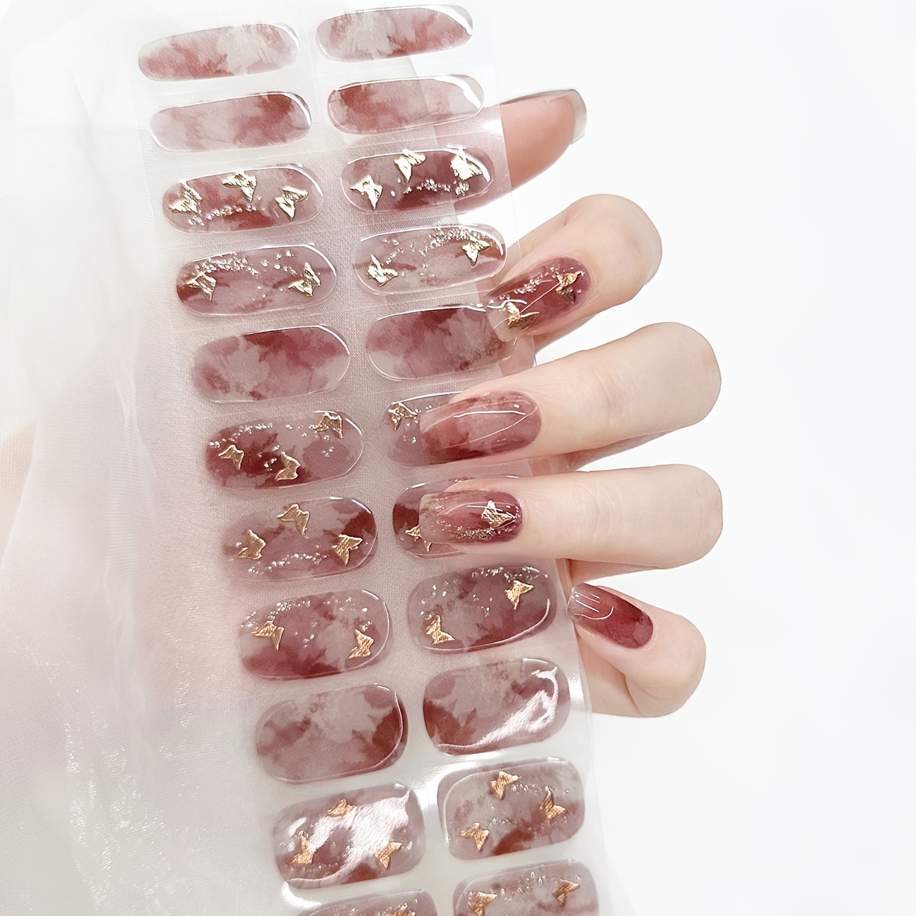 TEMU 패션 노베이크 젤 네일 스티커, 나비 호일 네일 아트 키트, 여성용, 여행과 파티에 완벽, 램프 필요 없음