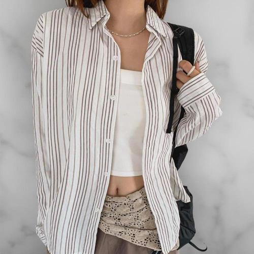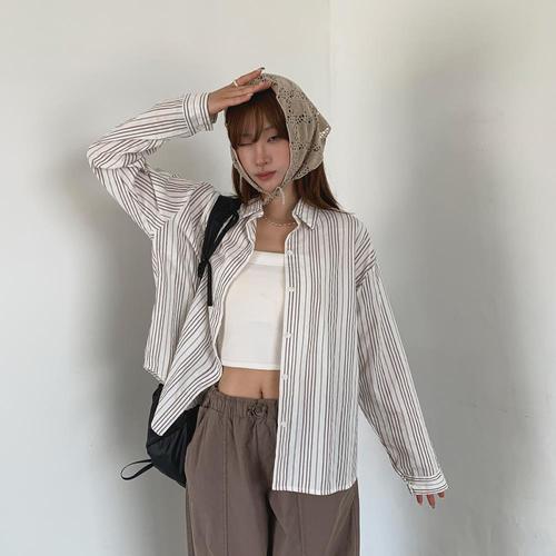 여성 셔츠 면100 SS 박시핏 줄지 내추럴 셔츠