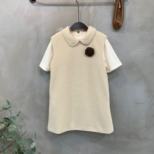 씨샵인더룸 / 다초 덤블 플라워 브로치 카라넥 미니 원피스 2color C