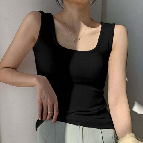 [신상오픈런]여성용 스판 민소매 티셔츠 스퀘어넥 데일리 스타일