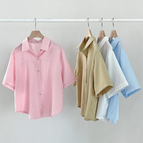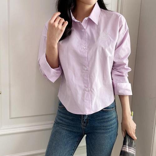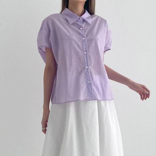[다잇템]여자 셔츠 카라넥 데일리 세미크롭 SS 셔츠 (15945376A)