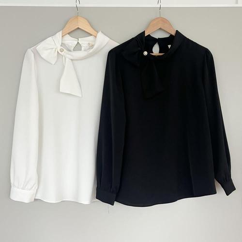 지니우우 J0233A 콩단추 넥리본끈 포인트 블라우스