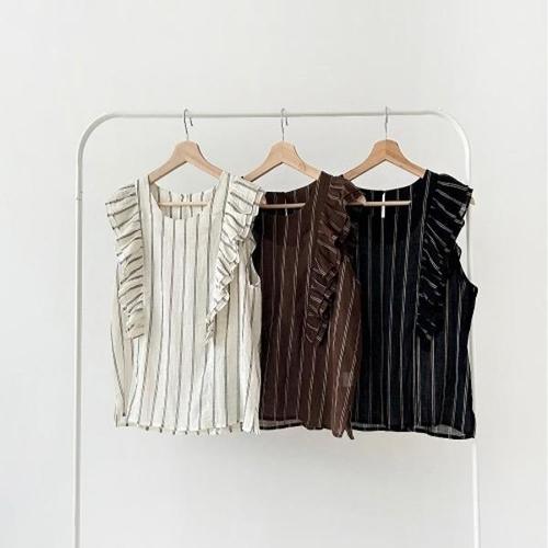 [브이와이][VY] 여자 슬리브리스 U넥 포인트 프릴 블라우스_13674115_588847