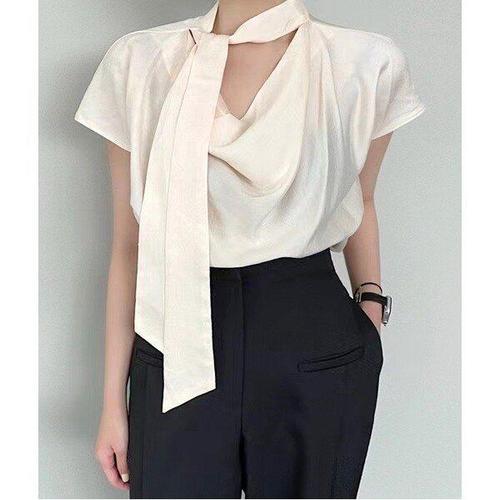 [위시드]페미닌 타이넥 포인트 반팔 블라우스 (WIBBBL054)