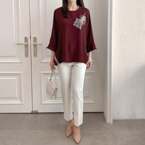[위시드]퍼프 포인트 라운드넥 하객 블라우스 (WIAABL164)