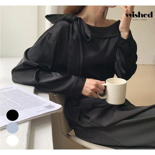 [위시드]페미닌 보트 타이넥 포인트 블라우스 (WIBCBL031)