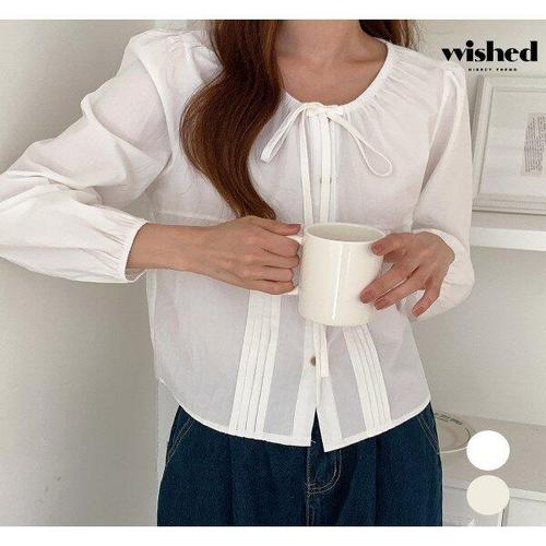 [위시드]라운드넥 셔링 끈 포인트 긴팔 블라우스 (WIBCBL029)