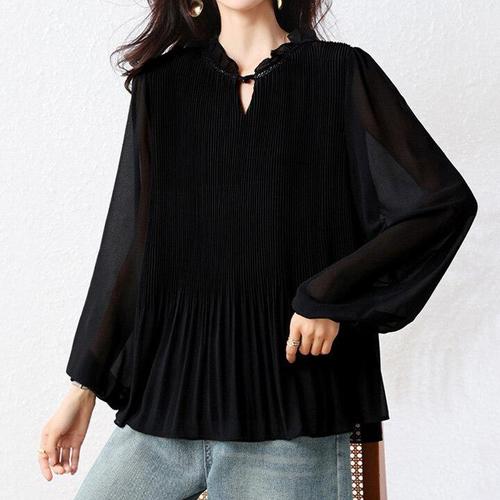 [위시드]러블리 셔링넥 포인트 프릴 블라우스 (WIAABL168)