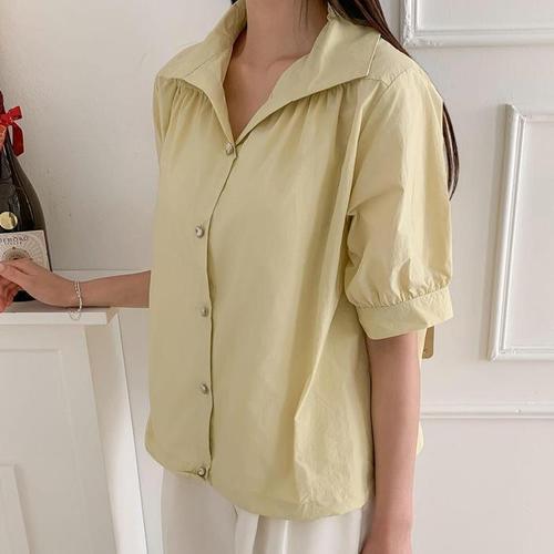 [신상오픈런]|CDH235A|고쒀학 마 면 여성 노란색 블라우스 SS_18158480_597559