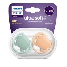 필립스아벤트 울트라 소프트 노리개 젖꼭지 2p, 0~6개월, 그린 + 오렌지, 1세트