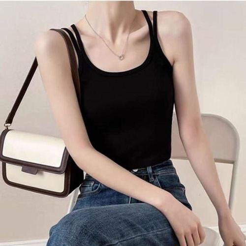 나시 캐미솔 노브라 티 여성 민소매 캡 캡내장