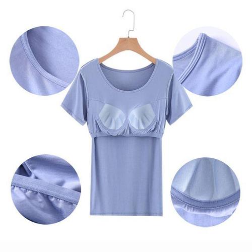 NPF 여자 여성 노브라 티 티셔츠 브라 캡 패드 내장 티 셔츠 홈웨어 모달 이너