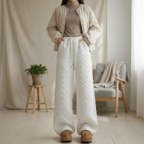 [옷자락]여성 겨울 두꺼운 기모 퀼팅 보온 팬츠
