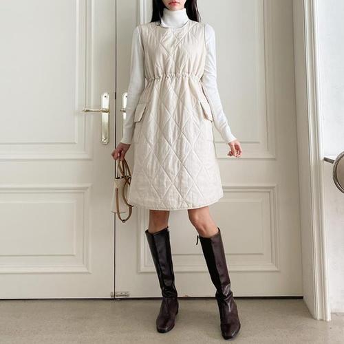 [셀럽하우스](CESS) YBZU2204 9717 터틀넥 누빔원피스 2 나시 루즈핏 원피스