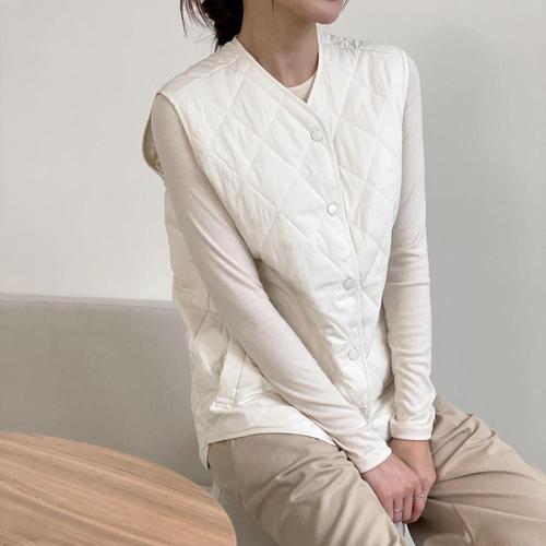 자가드 퀼팅 V넥 버튼 베스트_PPVTW025001
