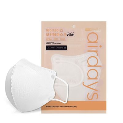 [에어데이즈] 슬림핏 새부리형 KF94 마스크 화이트 50매 (특대형/대형/중형/소형)