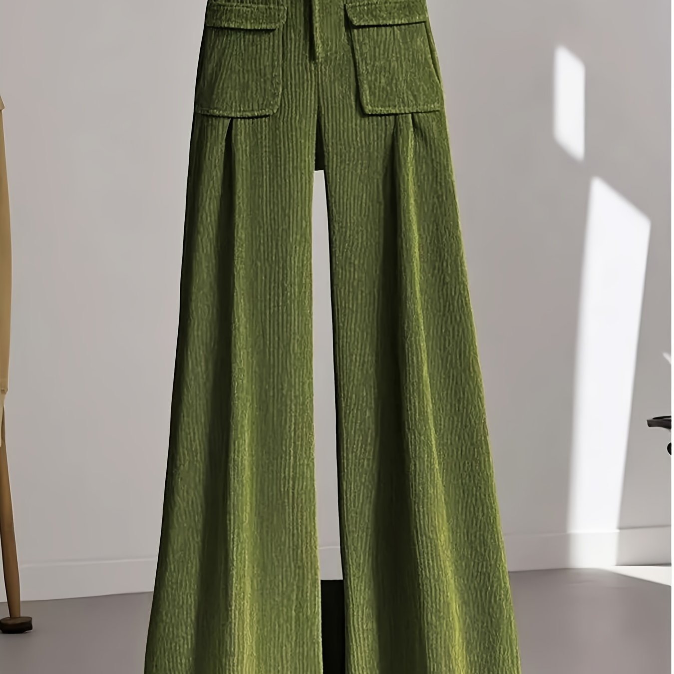 TEMU 여성용 올리브 그린 와이드 레그 팬츠 - 하이웨이스트 우아한 솔리드 컬러 팬츠, 벨트 루프 & 포켓, 구조화된 사계절용 롱 팬츠, 캐주얼 & 포멀 웨어, 주름 방지 (세탁기 사용 가능)