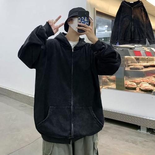 [주식회사 브이와이][JHQRLFTF_4B]남성 짚업점퍼 올블랙 빈티지 집업점퍼 (24063369A)