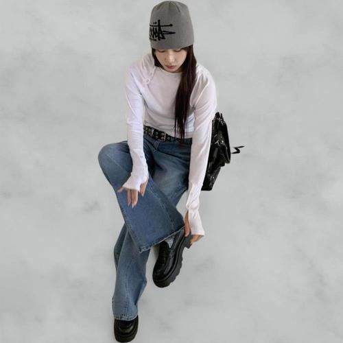 [다잇템]여성 나팔 캐쥬얼 옆면 와이드핏 트임 청바지