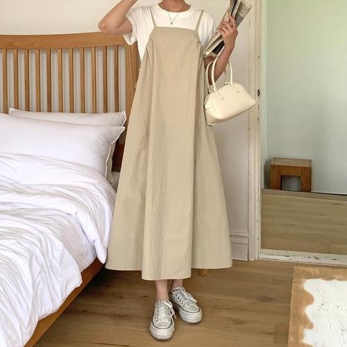 [린다샵]네모니 라운드넥 반팔 나일론 나시 롱 원피스 세트