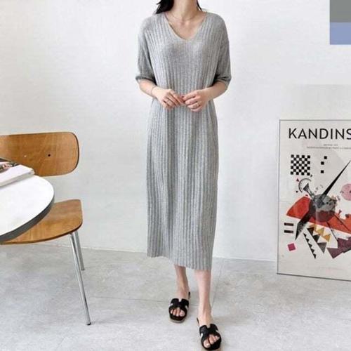 [셀럽하우스]여성상의 VCEU9373 봄니트 루즈핏브이반팔니트롱원피스 여자니