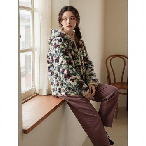 TEMU 가을과 겨울용 두꺼운 소, 얼룩말, 표범 프린트 점박이 숄 캐노피 루즈한 인조 퍼 박쥐 스타일 오픈 가디건 망토|가디건