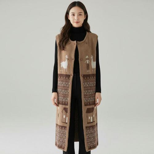 제이네오 니트 롱 스웨터 여성 민소매 루즈핏 브이넥 블렌드 울 가디건