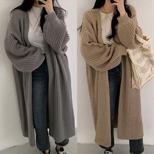 [다잇템]여자 FW 니트 롱 박시핏 환절기 박시 가디건 (19285799A)