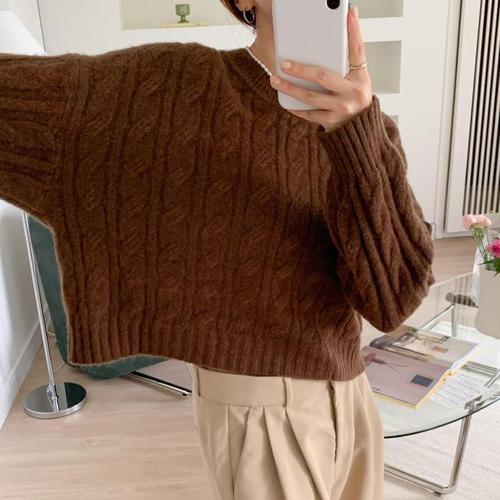 [다잇템]여자 롱슬리브 FW 박시핏 세미크롭 덤블 니트 (17830604A)