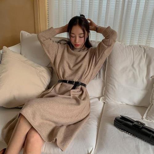 M1 여성 니트 원피스 봄 추동 이너 롱스커트 스웨터 우아한 터틀 프렌치 롱원피스 JEN3