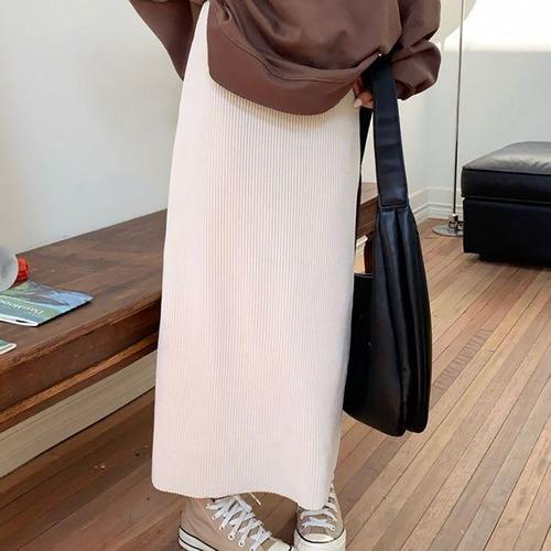 [에이치플러스몰]여성 캐주얼 골지 롱 니트 스커트 내추럴 데일리룩