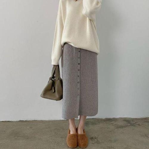 [셀러허브_여성트랜드패션]ONM 앞단추 롱스커트 니트 페미닌룩 골지 포인트 롱치