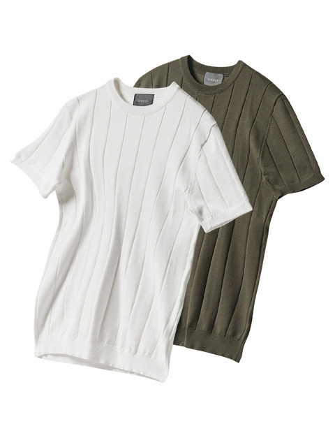 Destijl HC06 깔끔한 비즈배색 모브 라운드 5부반팔 벌집 니트티 D2621sw06
