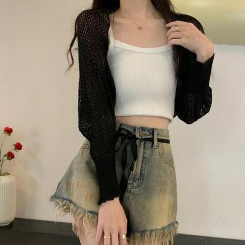 [셀러허브_여성트랜드패션]ONM 카디건 여름 볼레로 가디건 에어컨 니트 펀칭무늬