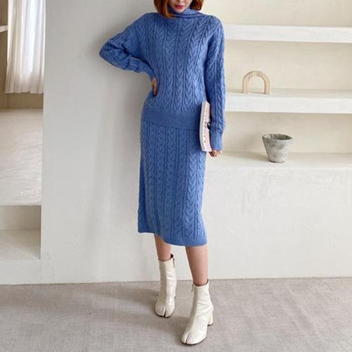 [다잇템]여자 치마 스웨터 꽈배기 U넥 골지 터틀넥 세트_3 (16678846A)