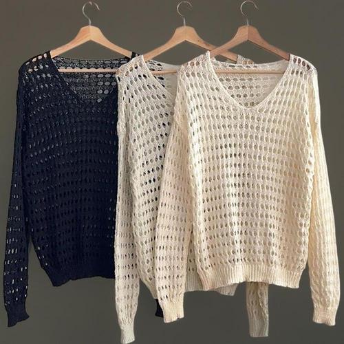 |KST94B2|여성 브이넥 시스루 니트 커버업 그물 여름용 워터밤