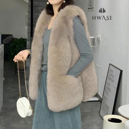 POMTOR 가을 겨울 여성 조끼 슬림핏 밍크털 베스트 코트