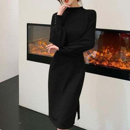 [셀럽하우스]은창)하프넥 RUJD9830 방한 니트 스타일 원피스 치마 롱원피스