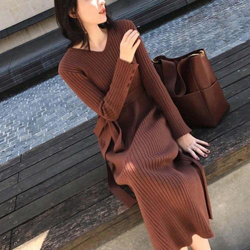 롱원피스 골지 데일리 슬림핏 스러운 긴팔 니트원피스