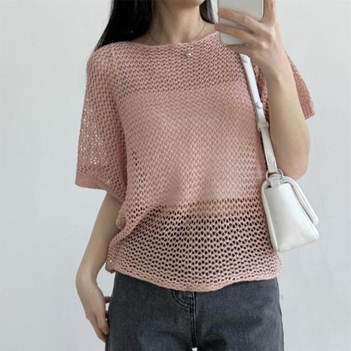 여자 비키니커버 네트 바캉스룩 반소매 니트