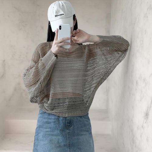 여성 비침 펀칭 워터밤 기모노핏 비키니 니트
