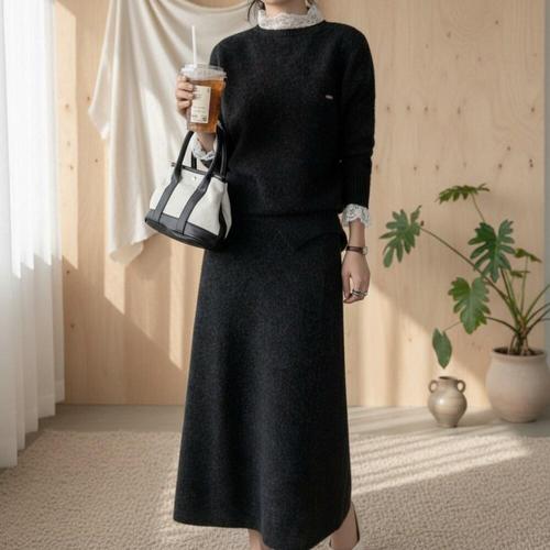 [옷자락]여성 가을 겨울용 니트 투피스 세트
